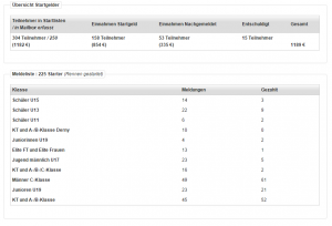 Unter dieser Option kann überprüft werden, wieviele Teilnehmer insgesamt und wer für welche Rennklasse gemeldet haben.