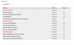 | Beschreibung: | Runden Nummer | Sponsorenname oder WERTUNG SUPER TEMPOWERTUNG | Typ Geldprämie on Sachprämie off | Betrag in € | Sachbeschreibung, z.B. Flasche Wein | Anzahl |